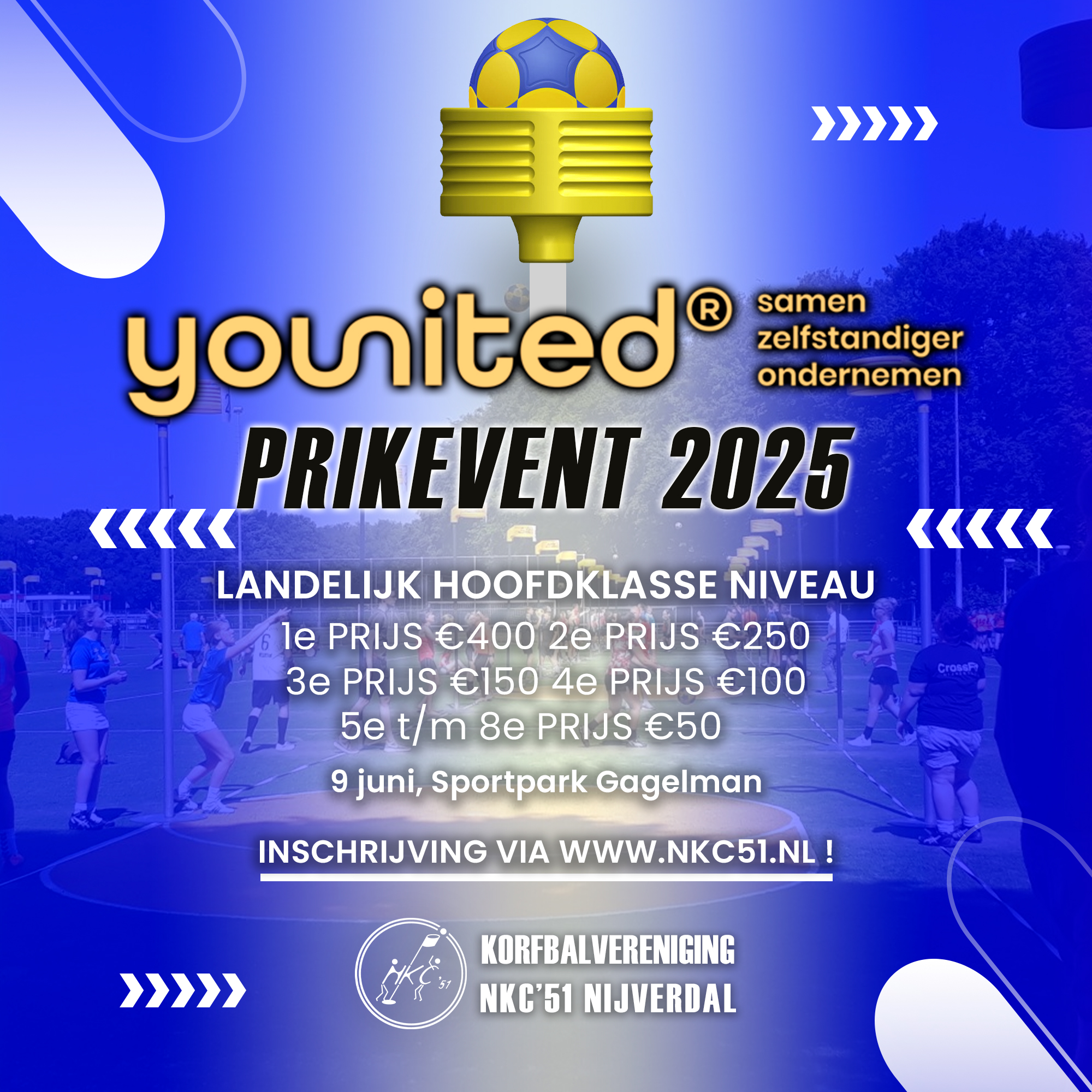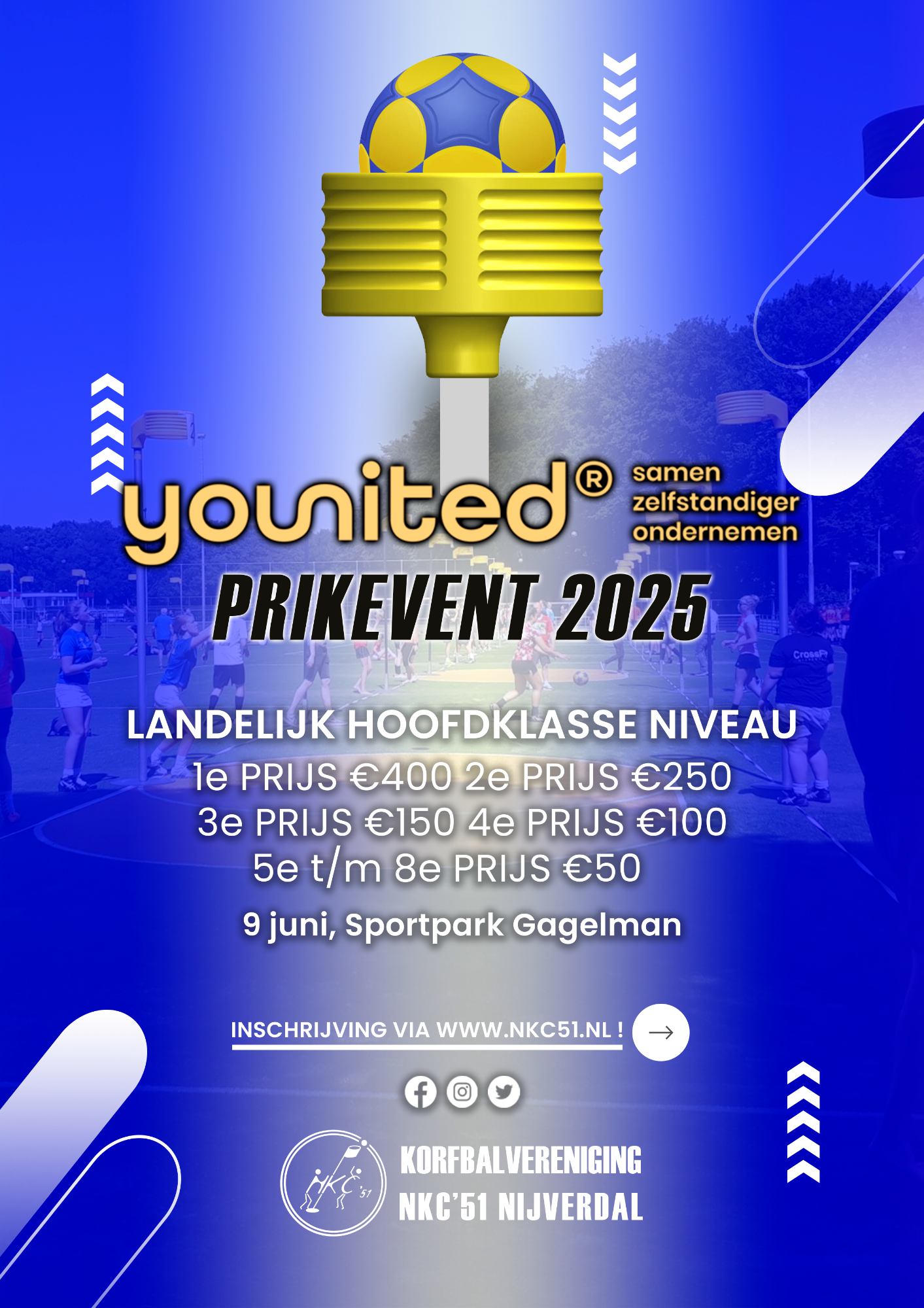 Hieronder mijn werk voor een evenement van Korfbalvereniging NKC'51 uit Nijverdal. Dit evenement heeft een landelijke bekendheid binnen de korfbalwereld. Vandaar dat het een goed aansprekend ontwerp moest zijn. Hieronder zie je de werken, instagramposts, affiches voor op televisieschermen, affiches voor drukwerk, een logo en een profielfoto voor de socialmedia kanalen.